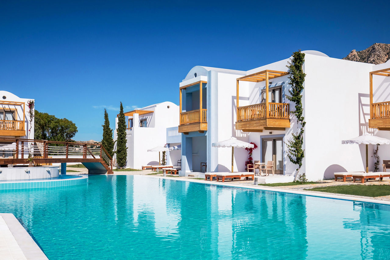 Beautiful views of the sea, with a stunning mix of traditional designs is just the start here. Mitsis Selection Blue Domes offers a vast array of facilities, with multiple pools, a fantastic range of bars and restaurants, and direct access to a Blue Flag shingle beach. Take advantage of the onsite Spa and indulge in a treatment or two. Little ones can enjoy the indoor cinema, playground and kid?s pool. There?s even a games room to keep the teenagers occupied. Wrapped in with all this is the fantastic All Inclusive Plus package, with drinks and snacks available at all times of the day.