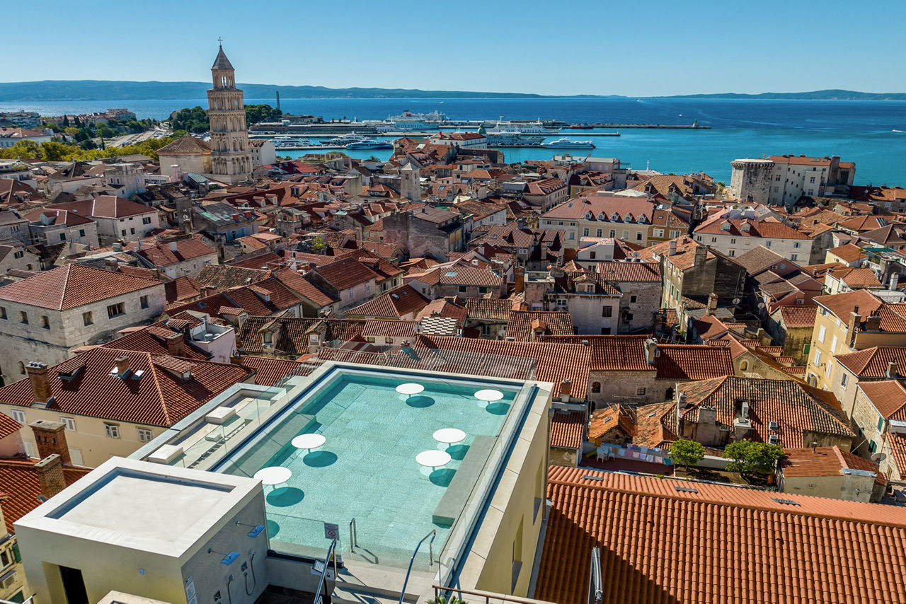 Cornaro Hotel in Split offers modern comfort combined with stylish design, featuring a refreshing plunge pool and a vibrant rooftop area perfect for soaking up the sun. Guests can enjoy the spacious, well-equipped gym or relax in the on-site spa. Its central location makes it an ideal base for discovering Split?s rich history, scenic waterfront and wide range of bars and restaurants. With its blend of amenities and prime location, Cornaro Hotel is the ideal place to stay in the heart of the city.
