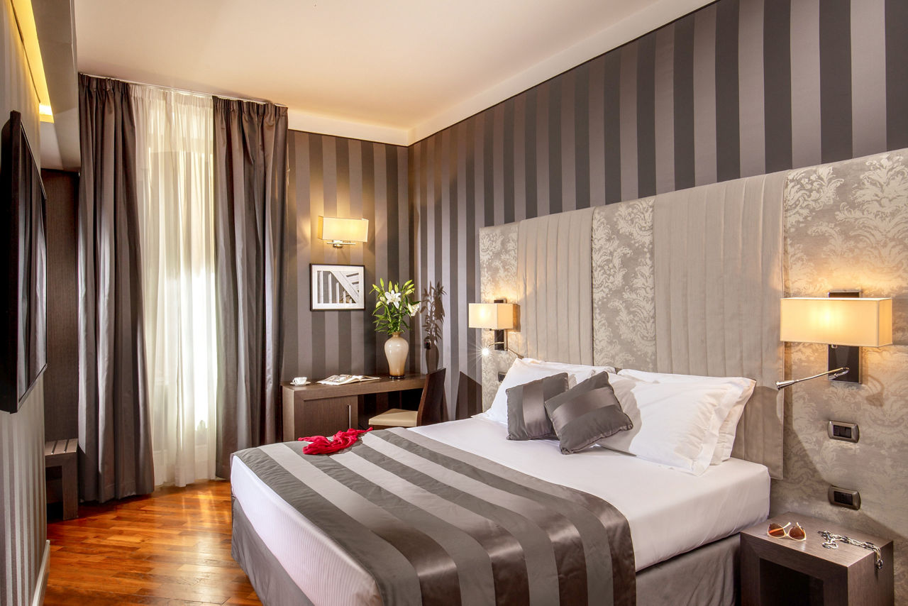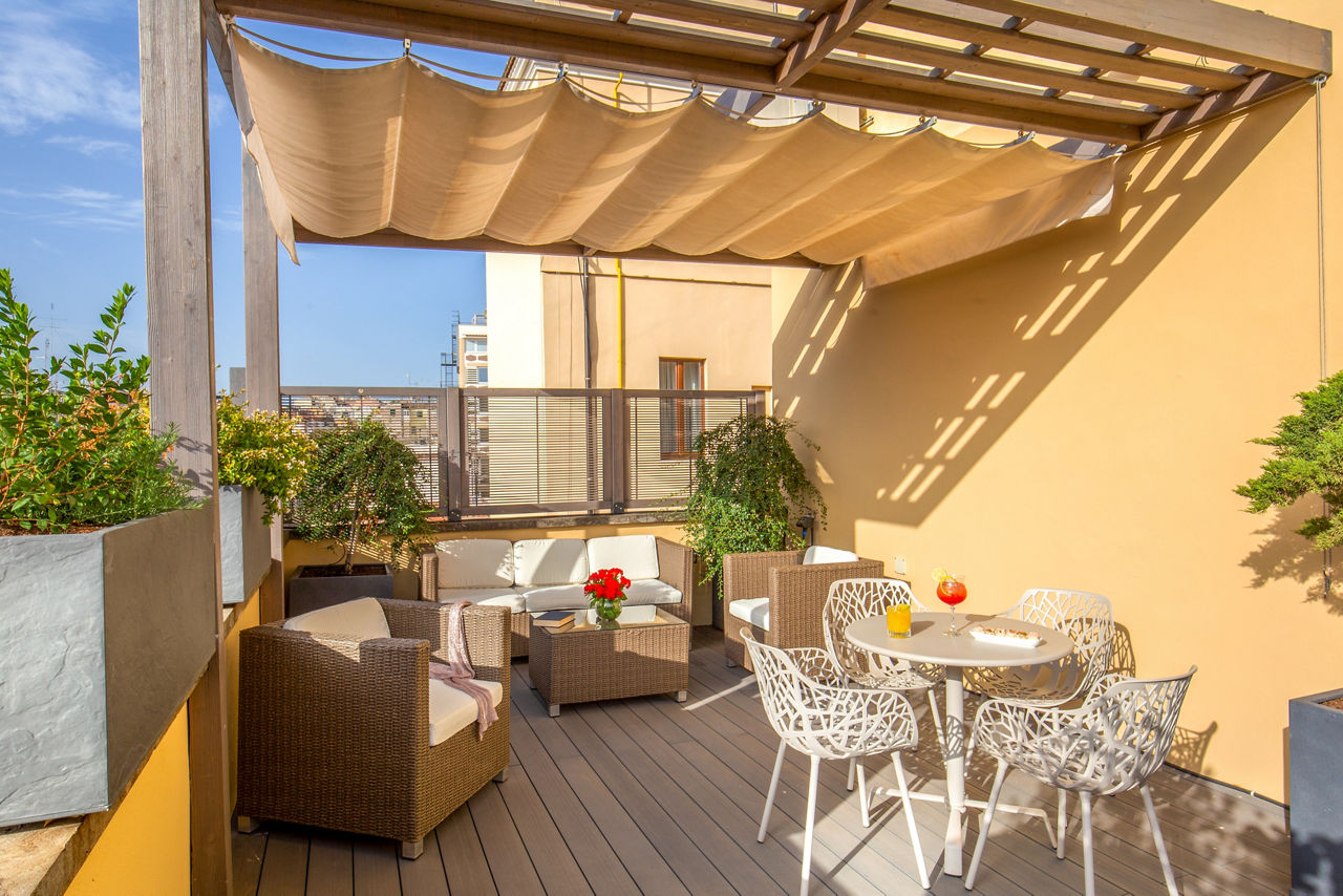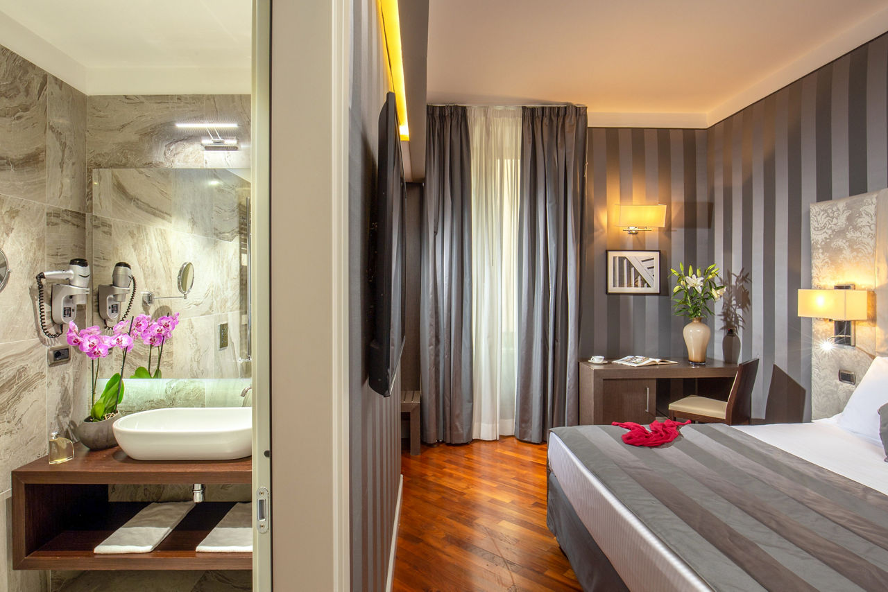 Located in the characteristic Monti district, Hotel Monti Palace is a stylish spot just a stone's throw away from Via Urbana with its bars and designer shops. The famous Colosseum is also within easy reach too. After a long day of discovering the Eternal City, head to the hotels rooftop bar with outdoor terrace and enjoy views over beautiful Rome. What is a better way to unwind than mesmerising views, cocktails and Italian nibbles on the side?