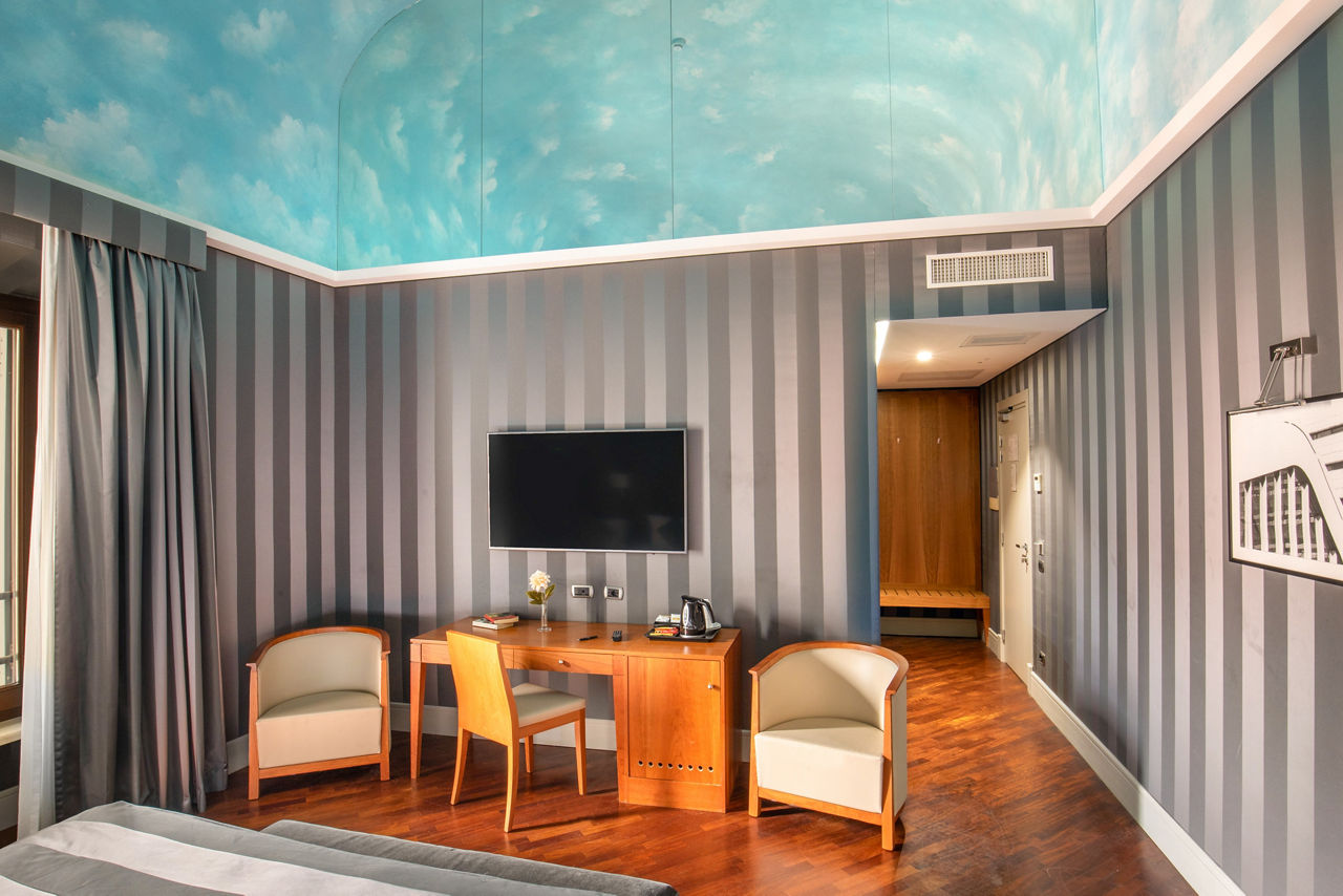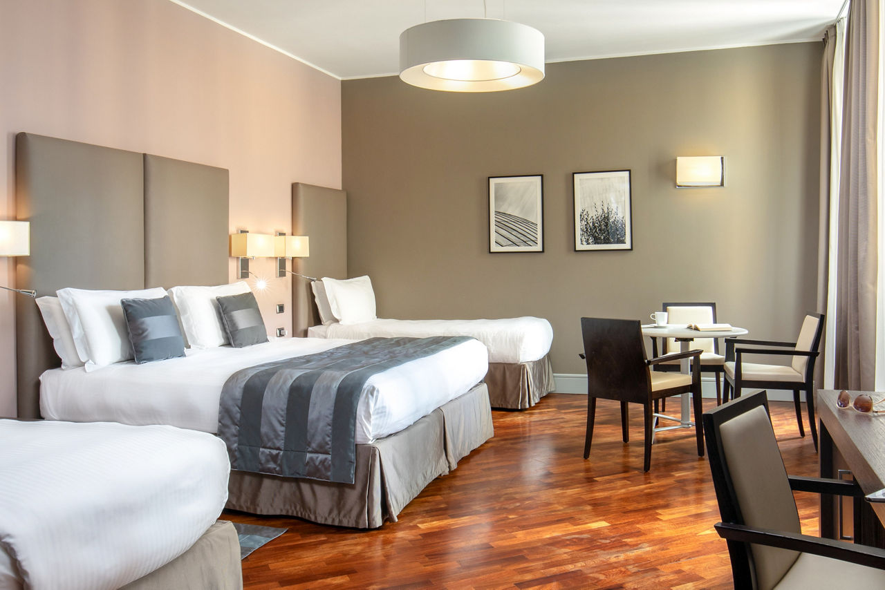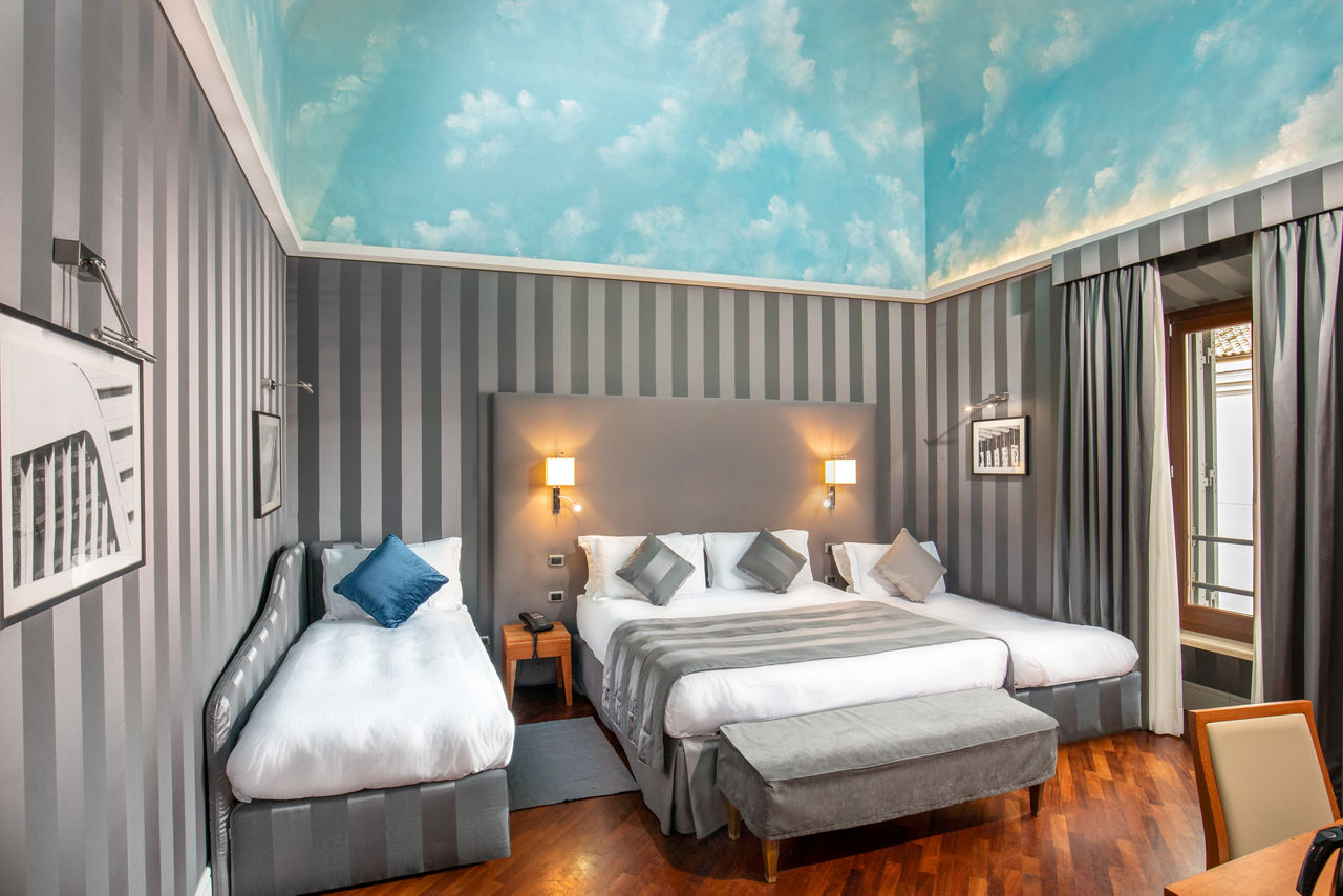 Located in the characteristic Monti district, Hotel Monti Palace is a stylish spot just a stone's throw away from Via Urbana with its bars and designer shops. The famous Colosseum is also within easy reach too. After a long day of discovering the Eternal City, head to the hotels rooftop bar with outdoor terrace and enjoy views over beautiful Rome. What is a better way to unwind than mesmerising views, cocktails and Italian nibbles on the side?