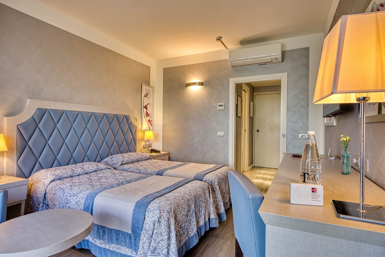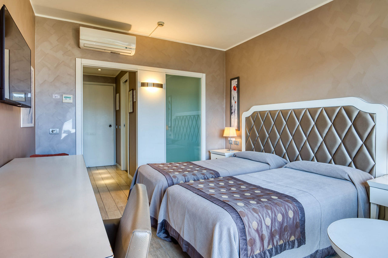 Double or Twin rooms without Balcony sleep up to 2 adults and have bathroom containing a bath or shower, air conditioning (weather dependent, approx. 15 Jun-15 Sep), hairdryer, television, minibar*, tea and coffee making facilities and safety deposit box. Upgrades to Double or Twin rooms with Balcony and Privilege rooms are also available.