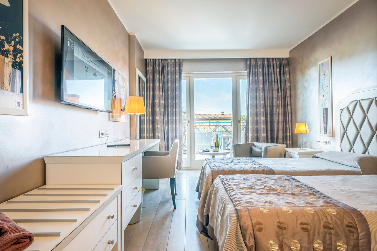 The Parc Hotel Gritti is ideal for those after a base for a holiday. Sitting in a privileged spot on the shores of Lake Garda and just a short stroll from Bardolino's resort centre, it's perfectly placed for exploring the lake and the local charm. With a sun-drenched outdoor pool terrace, a peaceful indoor pool and direct access to Lido Mirabello beach*, there are plenty of spots to relax and unwind. Evenings here are all about winding down, with multiple dining options on offer and the chance to enjoy a glass of the full-bodied local wine that Bardolino is known for.