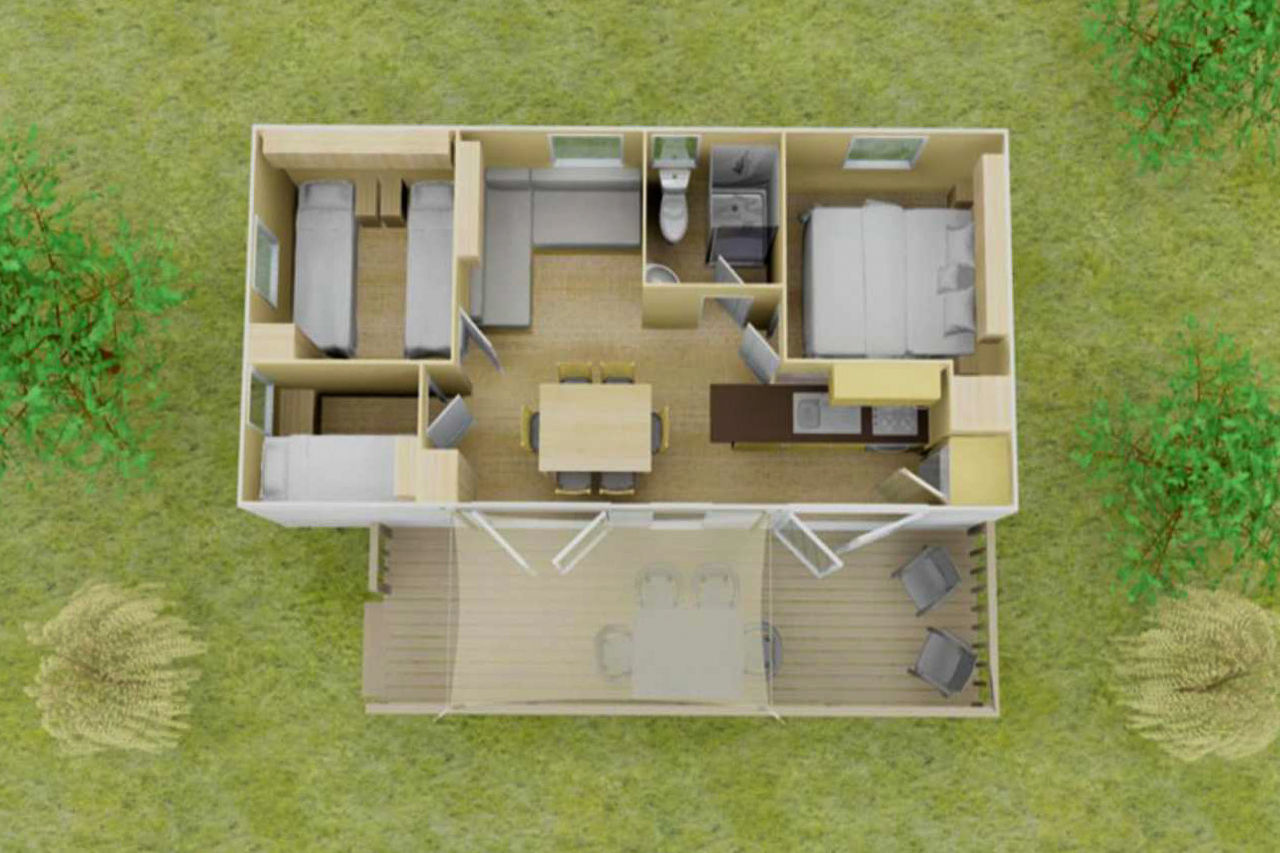 Comfort 3-bed mobile home - AC, covered decking, sofa bed