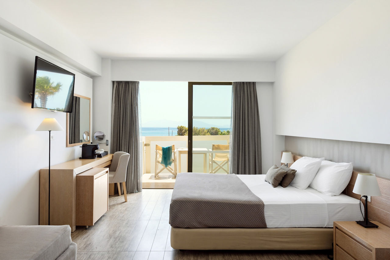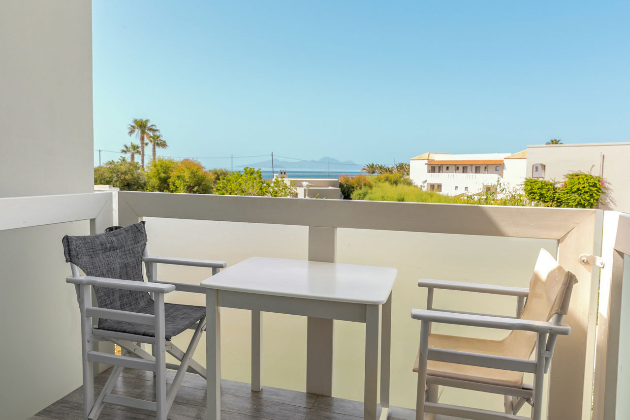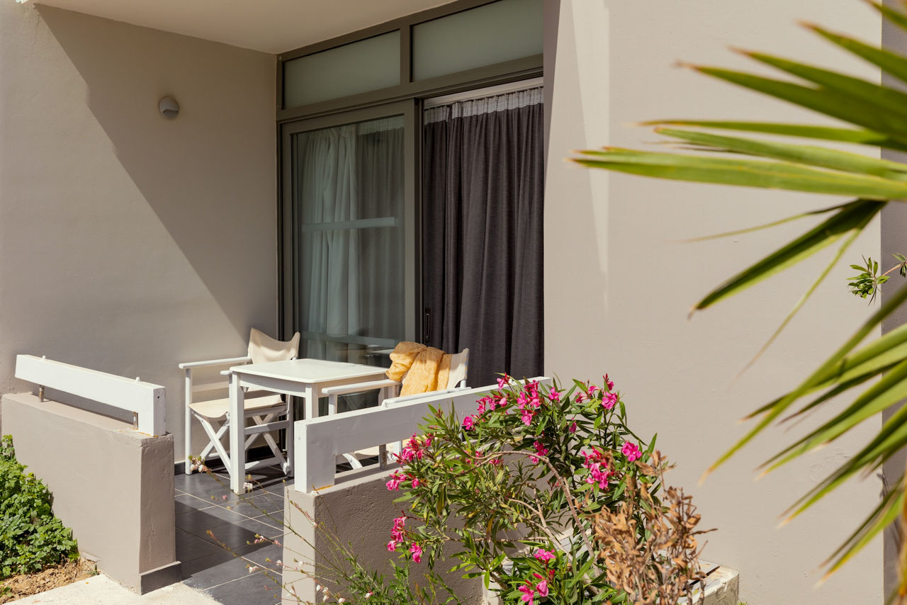 Double room with Garden View sleep up to 3 adults and have a bathroom containing a bath with shower attachment, air conditioning, hairdryer, flat screen television, kettle and balcony or terrace. Double room with Sea View, Double or Twin room with Garden View and Shared Pool, Family room, Maisonette with Garden View, Maisonette with Sea View and Double room with Garden View for Sole Use are also available.