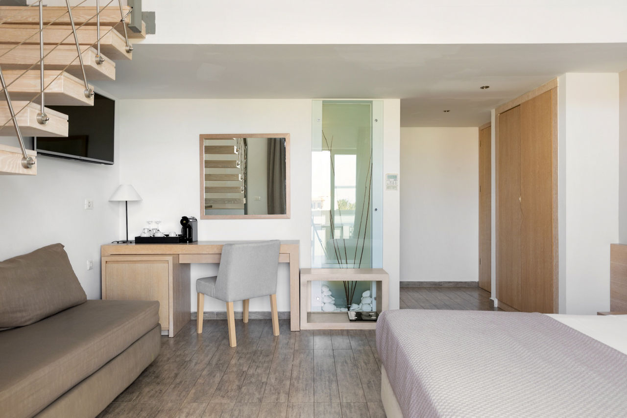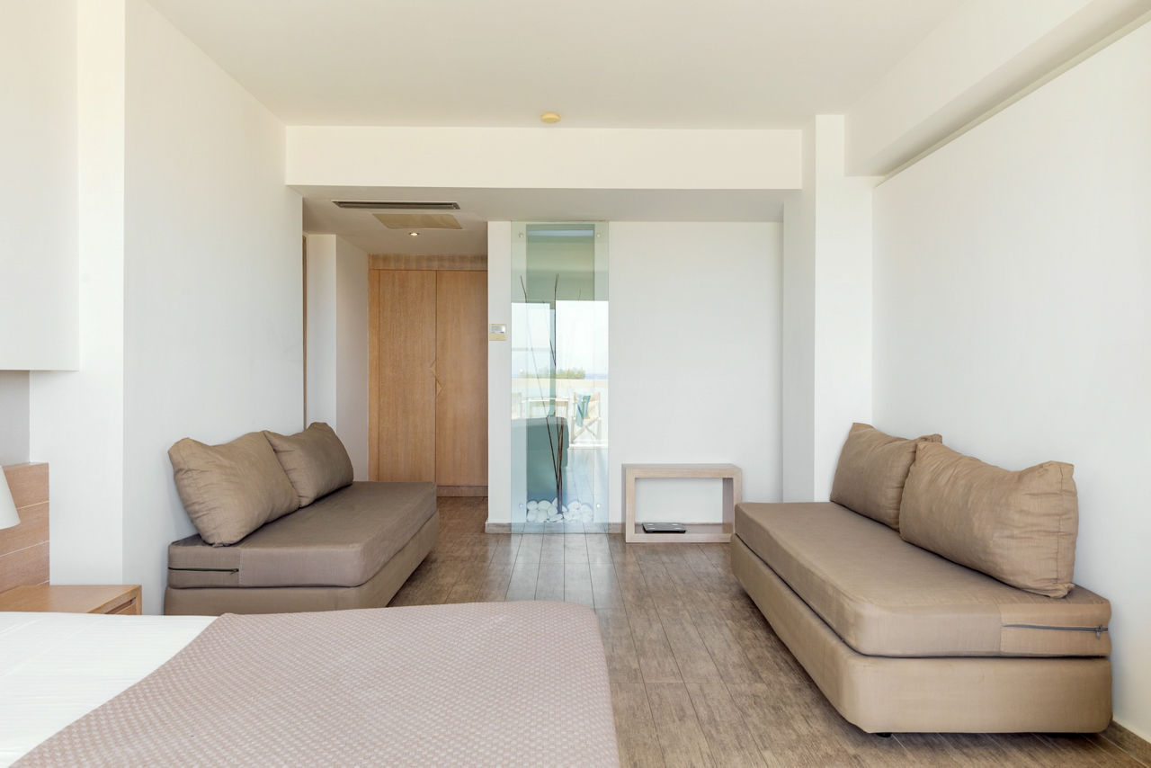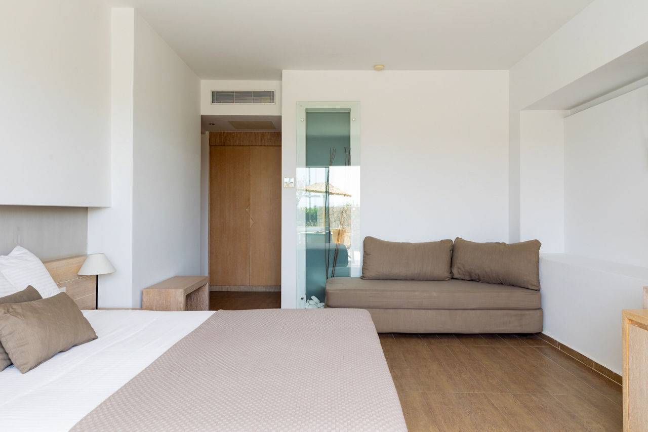 Double room with Garden View sleep up to 3 adults and have a bathroom containing a bath with shower attachment, air conditioning, hairdryer, flat screen television, kettle and balcony or terrace. Double room with Sea View, Double or Twin room with Garden View and Shared Pool, Family room, Maisonette with Garden View, Maisonette with Sea View and Double room with Garden View for Sole Use are also available.