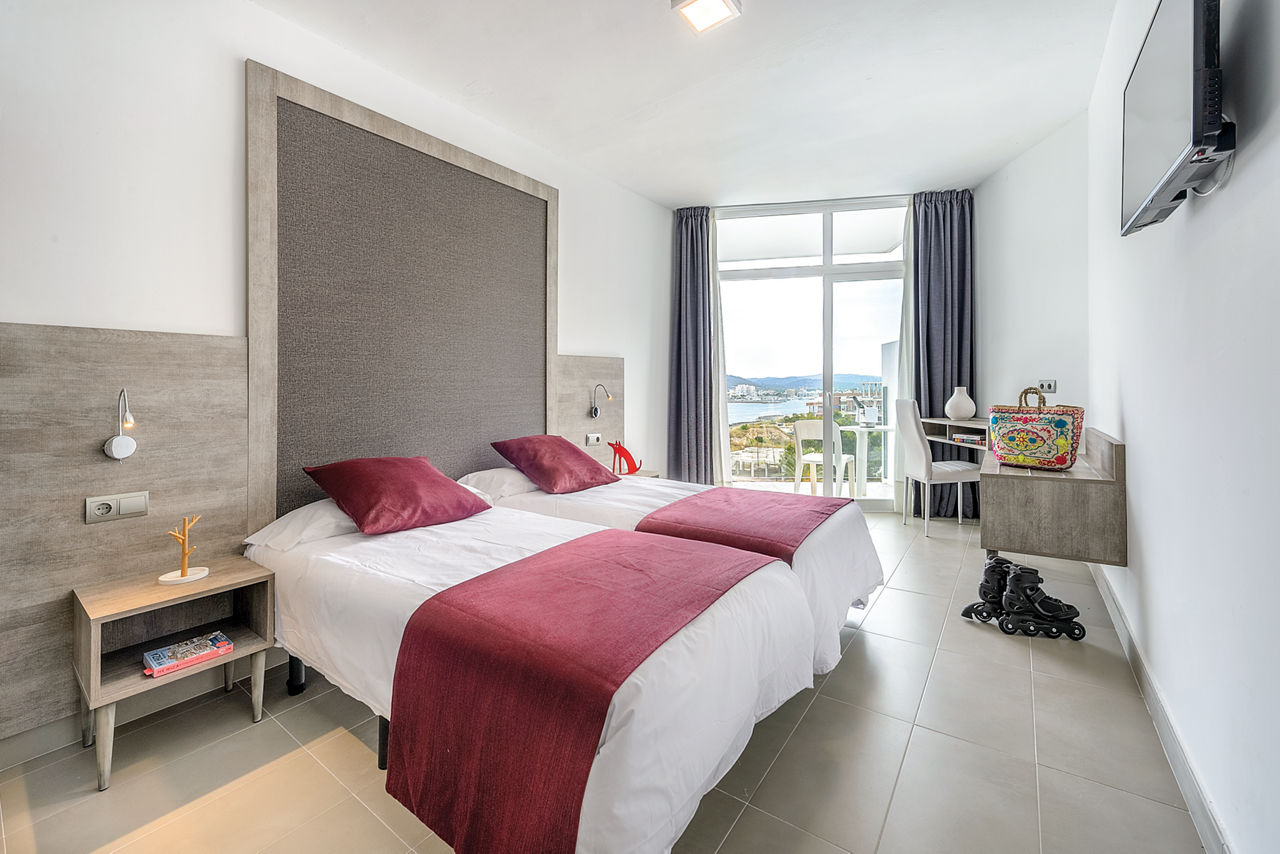 Double and Twin rooms sleep up to 2 adults and have a full bathroom, air conditioning, satellite TV and a balcony or terrace. Double and Twin rooms with extra bed sleep up to 3 adults, Double and Twin rooms for Sole Use, Room Only, Bed & Breakfast, Half Board and Full Board are also available.