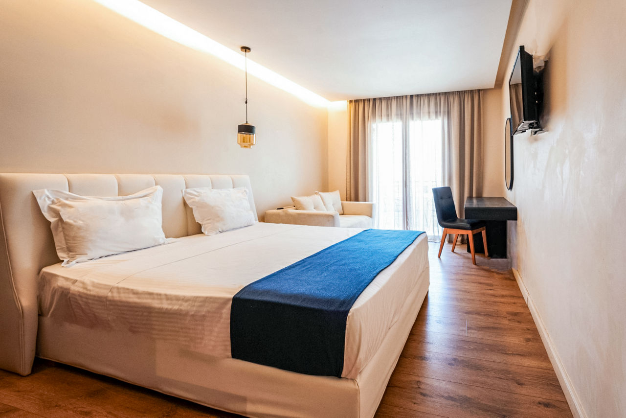 Sat on the seafront, the Wyndham Corfu Acharavi Hotel is perfect for those seeking an all inclusive getaway. Spend your days soaking up the sun around the hotel's pools, or if you prefer the beach, just a short stroll takes you to the comfy sunbeds. Refreshing drinks can be enjoyed from one of the hotels bars whilst taking in the atmosphere of the hotel. With a choice of rooms all offering simplistic neutral décor, this hotel is the perfect spot for a couples or family break.