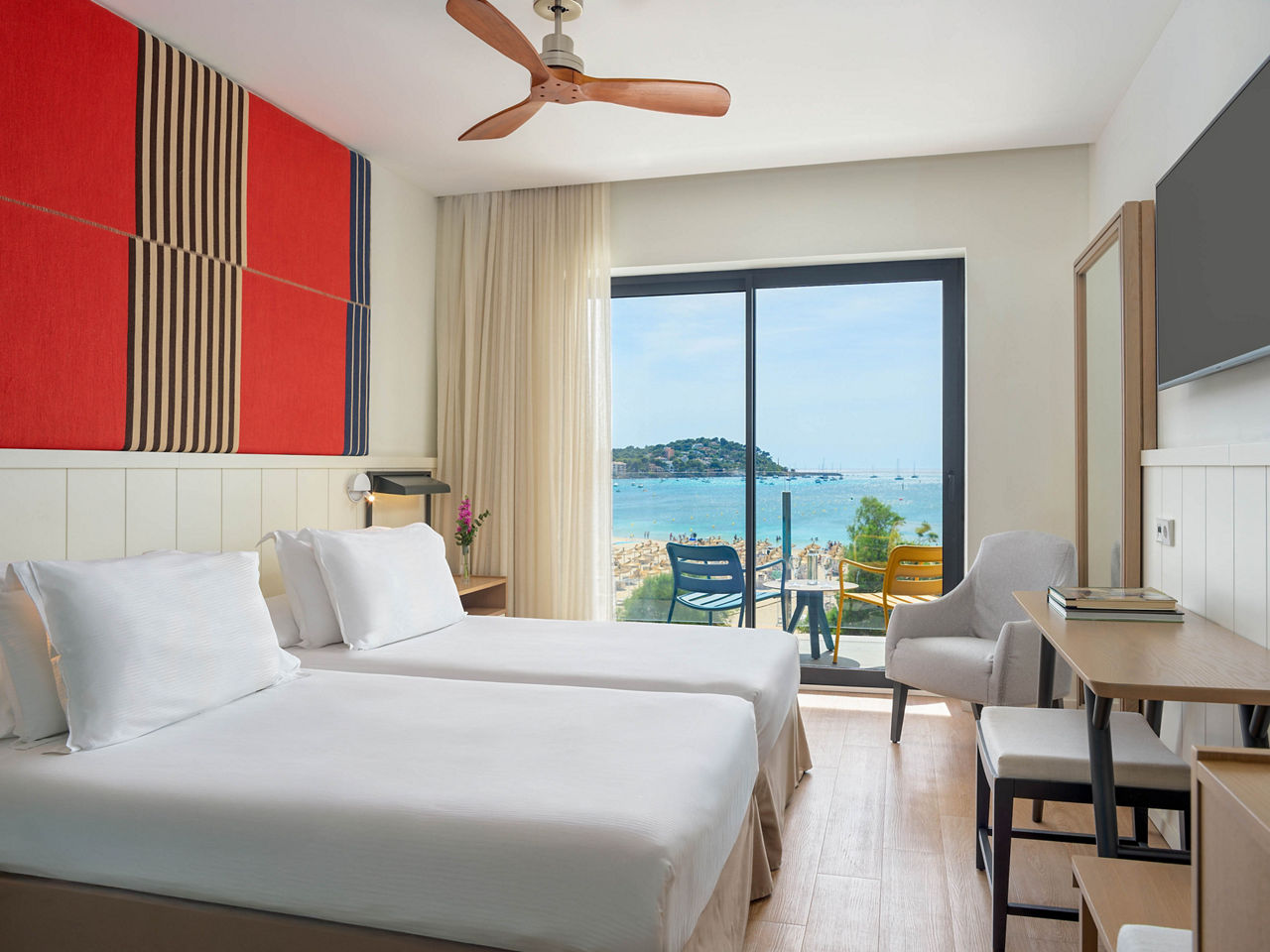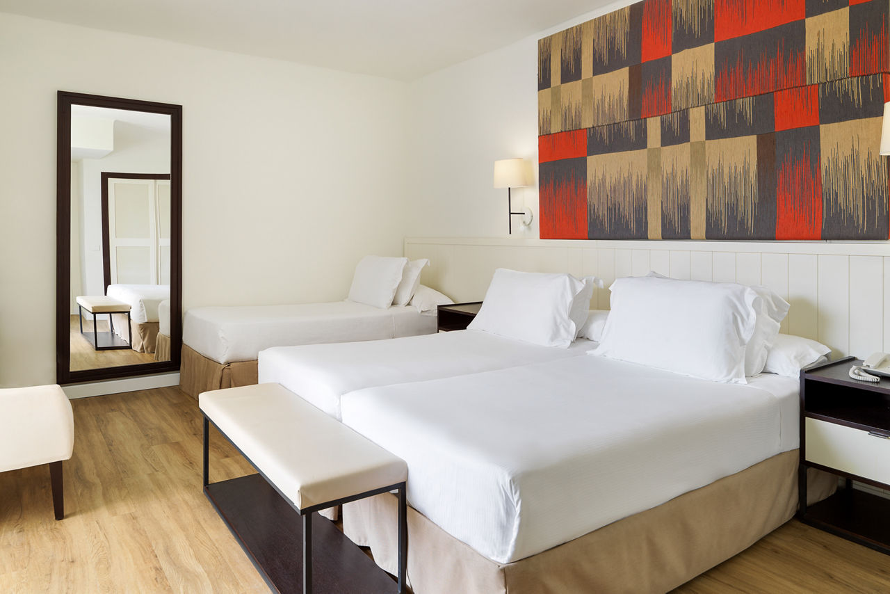 Standard rooms sleep up to 2 adults and 1 child and bathroom containing a bath with shower attachment, air conditioning (15 May-31 Oct), hairdryer, flat screen television and balcony or terrace. Room upgrades and rooms for sole use are also available.