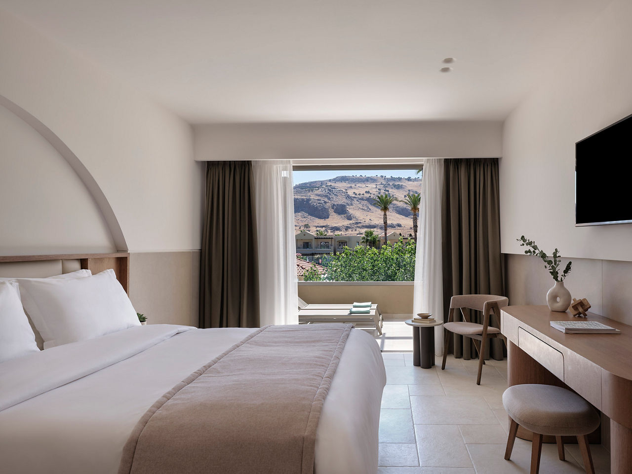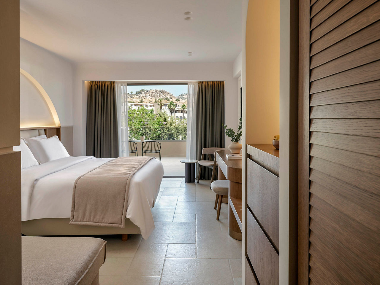 Double rooms sleep up to 3 adults and have bathroom containing a bath with shower attachment, air conditioning, hairdryer, flat screen television, mini-bar*, safety deposit box and balcony or terrace. Room upgrade options and Sole Use rooms are also available.