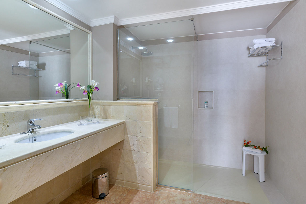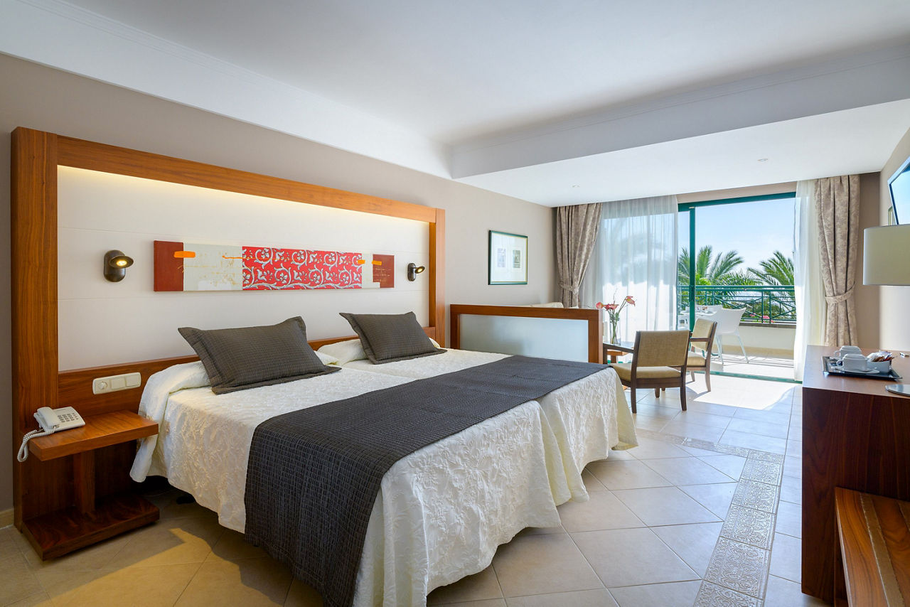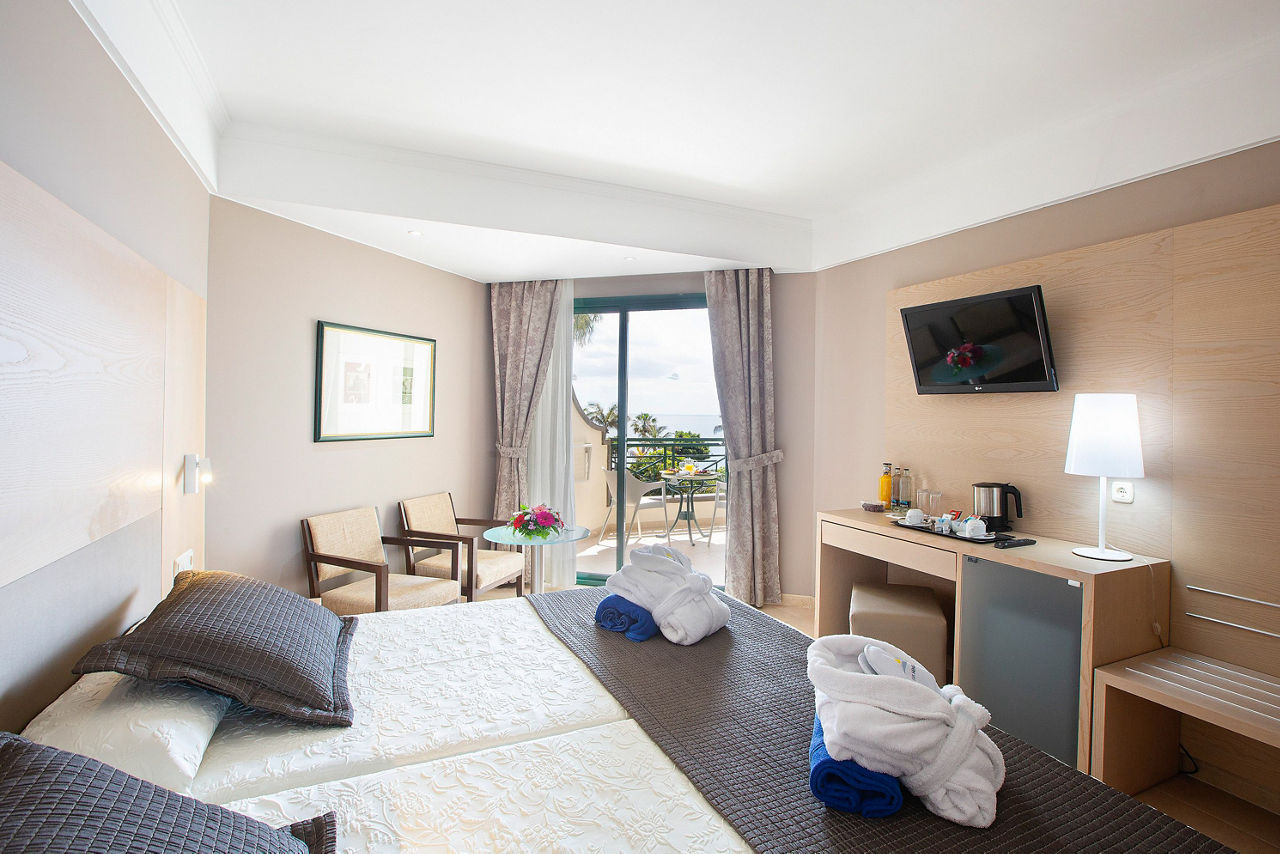 Double room's sleep up to 3 adults and have bathroom containing a shower, air conditioning, television, hairdryer, safety deposit box, bathrobe and slippers, Wi-Fi, and balcony or terrace. Upgrade options and Sole Use rooms are also available. All rooms contain orange juice and fruit on arrival and 2 bottles of water which are replenished every 3 days.
