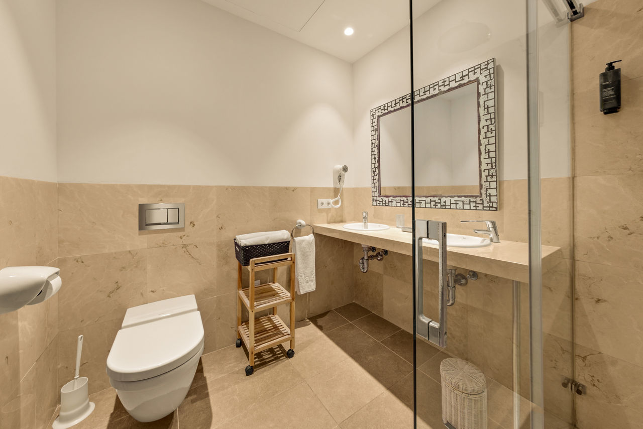Double rooms with Garden View sleep 2 adults and have bathroom containing a shower, air conditioning, hairdryer, flat screen television and balcony or terrace. Room upgrade options and Sole Use rooms are also available.