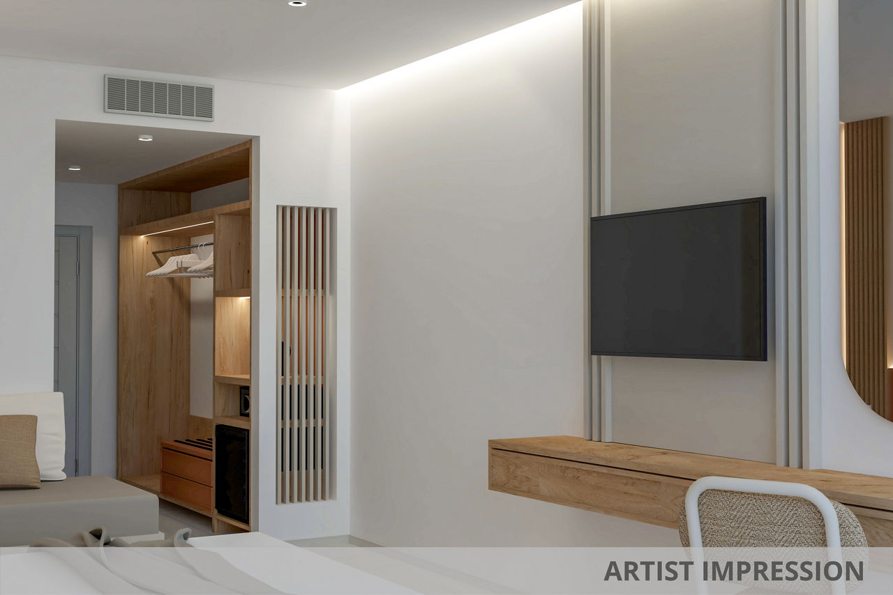 Studios sleep up to 3 adults or 2 adults and 1 child and have bathroom containing a bath with shower attachment, hairdryer, air conditioning*, television, double cooking rings, fridge freezer, kettle, microwave and balcony or terrace. One Bedroom apartments sleeping up to 4 adults, One Bedroom apartment in the New Block, Studios for Sole Use, Apartments for Sole Use are also available.
