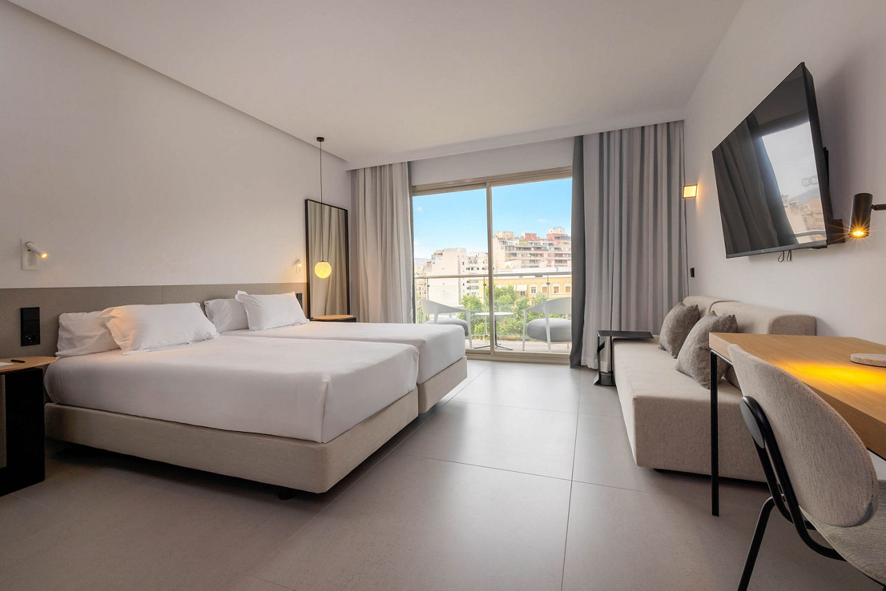 Enjoy ultra-urban accommodation and fabulous facilities at the HM Jaime III Hotel. With an amazing location in the centre of cosmopolitan Palma city, everything is on your doorstep from the picture perfect Old Town to the stunning marina. So, get ready to sight see by day and hit the bar-lined promenade at night. And after a day of exploring, why not relax at this Palma City hotel?s on-site spa and wellness centre? With a wonderful range of well-equipped rooms available, HM Jaime III Hotel is perfect for couples, families or friends looking to stay in the heart of this fantastic city!